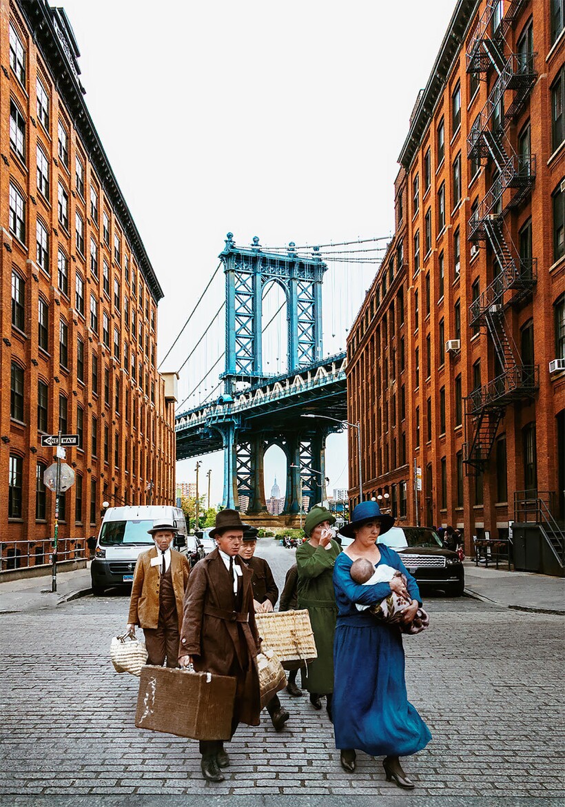 В начале 1900-х годов Нью-Йорк стал центром массовой иммиграции. Этот город и сегодня является одним из самых привлекательных для переезда (а еще мы собрали список стран, куда чаще всего переезжают на ПМЖ). Начало ХХ века ознаменовалось притоком миллионов людей, в основном из Европы, которые искали лучшей жизни в Новом Свете. Венгерская художница Флора Борси решила возродить историю иммигрантов того времени. Она отыскала старые черно-белые снимки и, используя Photoshop, раскрасила их, превратив людей из прошлого в современных жителей Нью-Йорка.