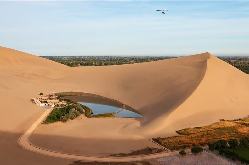Городок Дуньхуань, который вырос из оазиса посреди пустыни Гоби и в древности служил вратами на Великом шелковом пути