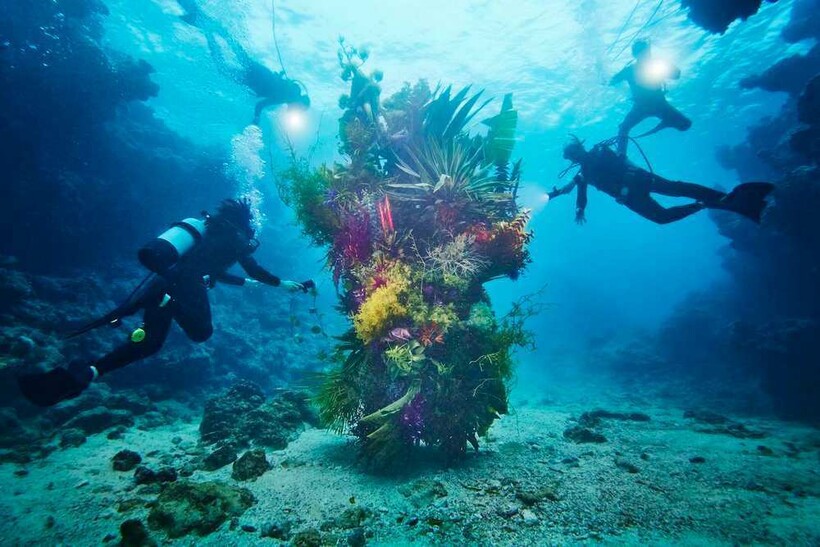 Например, в океане, даже на глубине более 1000 метров, цветы не сломались: инсталляцию просто несло течение