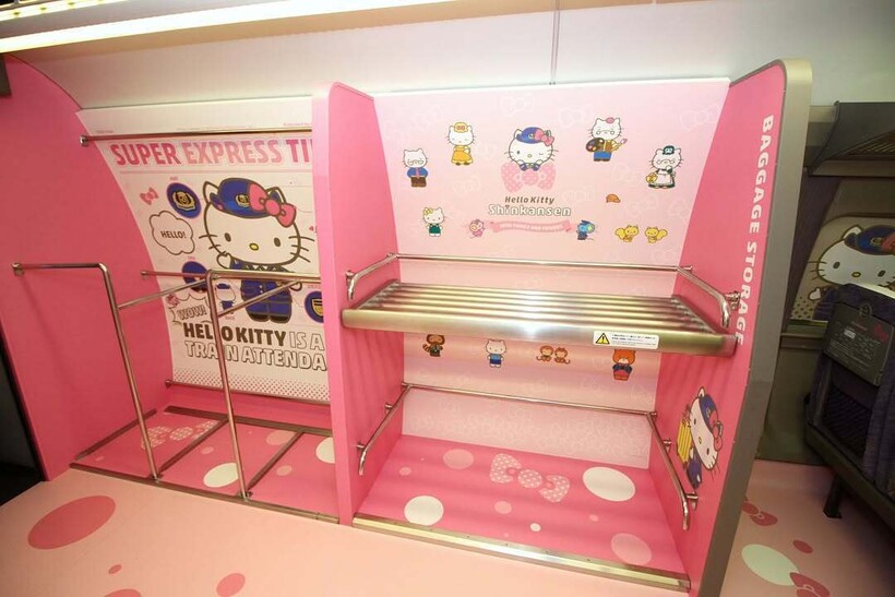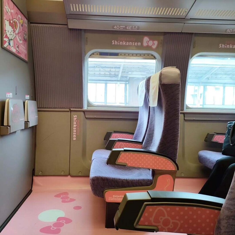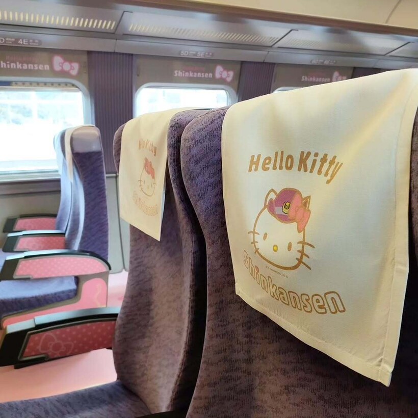 Внутри поезд оформлен в одном стиле: Hello Kitty повсюду, от чехлов на сидениях до оконных штор