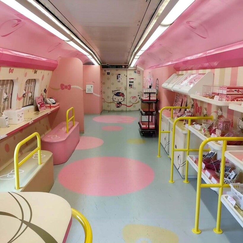 Даже звуковые сигналы на каждой станции заменены мелодиями из мультфильмов про Hello Kitty