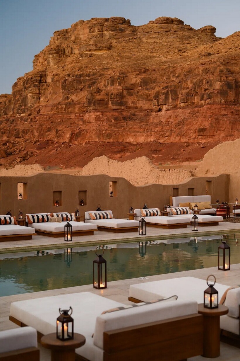 В самом сердце пустыни Саудовской Аравии есть древний город-оазис Аль-Ула. Он давно привлекает деятелей искусства своим колоритом: например, мы рассказывали, что в прошлом году в местной пустыне появились инсталляции от современных художников. Именно тут и находится отель Dar Tantora the House. Этот оазис, удаленный от шумного мира, служит порталом в прошлое, где традиции и история переплетаются с современным комфортом.