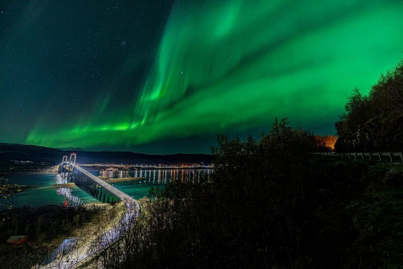 Небо над Лофотенскими островами оживает благодаря северному сиянию