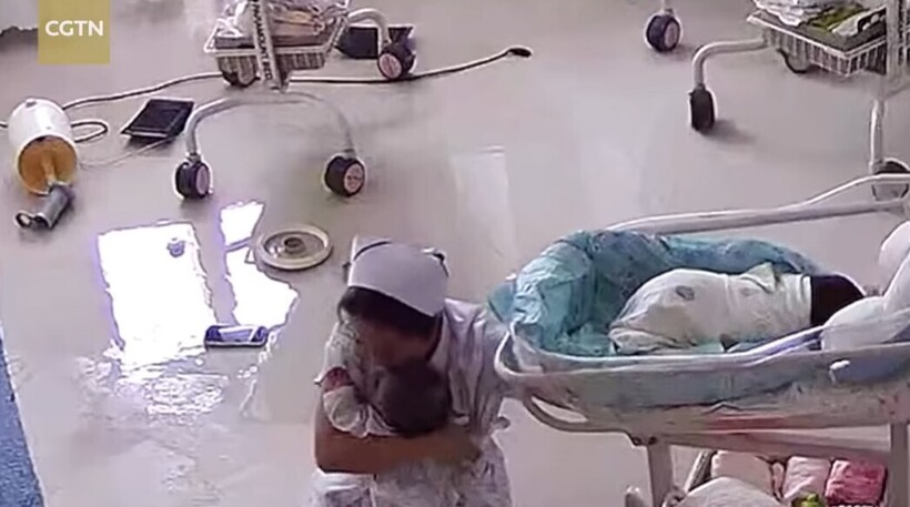 В момент, когда земля стала уходила из-под ног, две медсестры в отделении для новорожденных проявили невероятную храбрость и самоотверженность. Их единственной заботой было защитить младенцев, находящихся под их опекой. На кадрах видно, как они пытаются удержать боксы с малышами и прижимают их к себе.