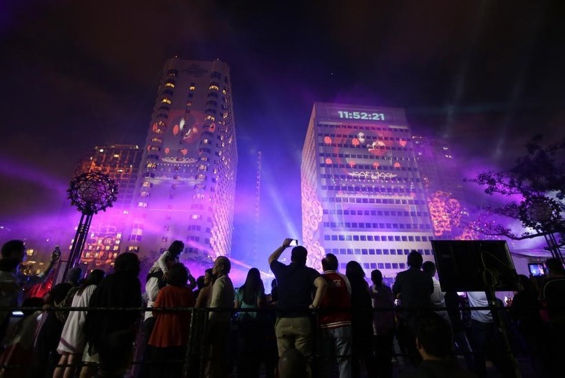 Лазерное шоу на зданиях в центре Манилы, Филиппины