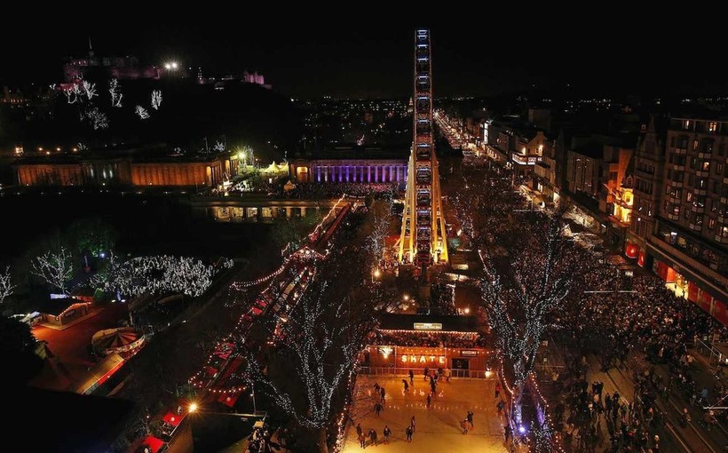 Тысячи людей пели и танцевали на Принцесс-стрит в Эдинбурге, Шотландия.