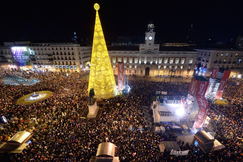 Тысячи людей провожали старый и встречали новый год на центральной площади Мадрида, Испания.