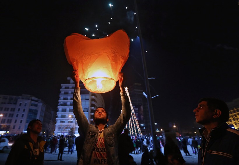 Небесными фонариками люди отпраздновали наступление нового года в Бейруте, Ливан.