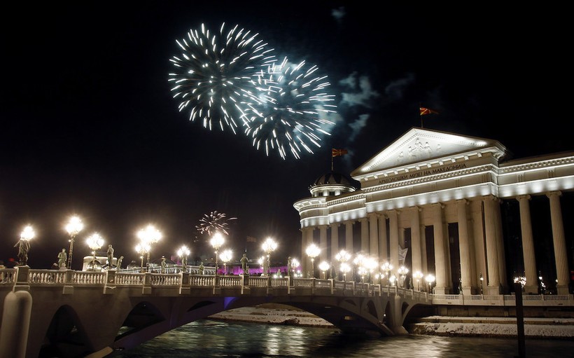Пиротехническое шоу над Археологическим музеем в Македонии.