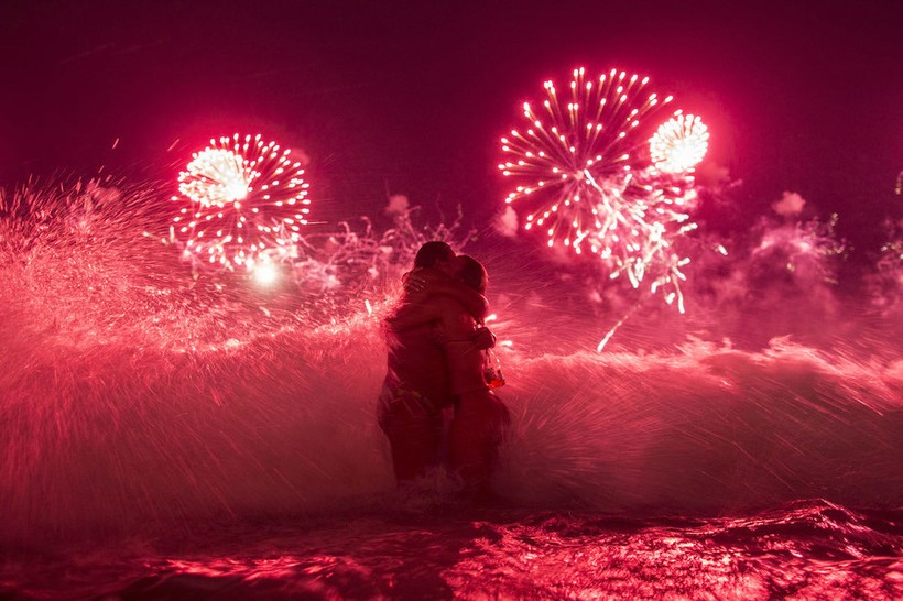 В Гонконге над гаванью Виктория происходило невероятное пиротехническое шоу