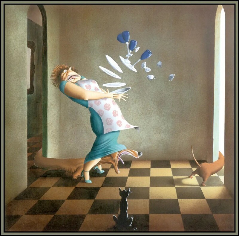 Его персонажи, будь то люди или животные, неизменно попадают в забавные и порой абсурдные обстоятельства