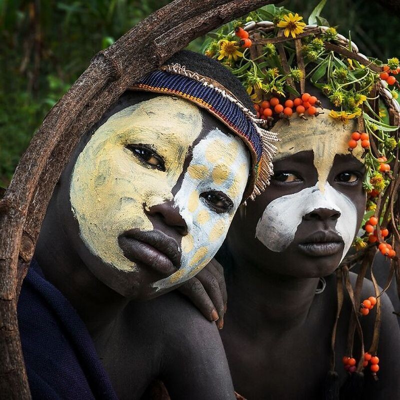 Мальчики из Эфиопии с традиционными рисунками на лице
