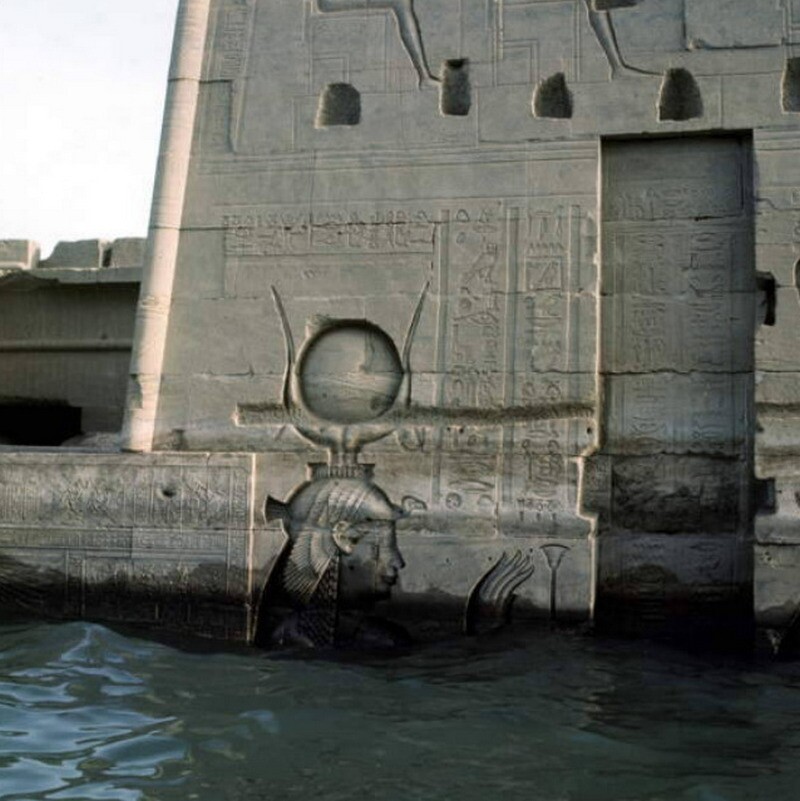 Храм на острове Филы посреди Нила после разлива реки, фото конца 1960-х годов