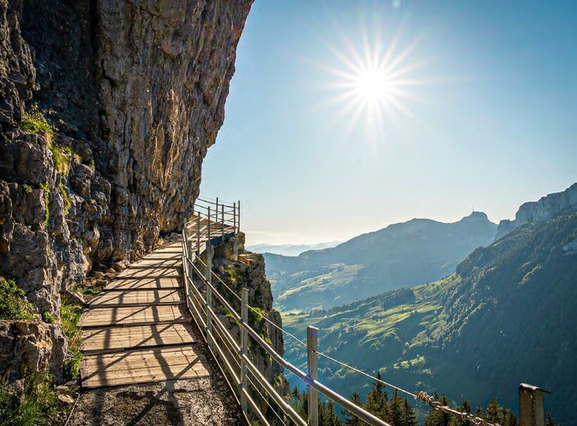 Неспешная получасовая прогулка подарит захватывающие виды на альпийские пейзажи, вершины и ущелья
