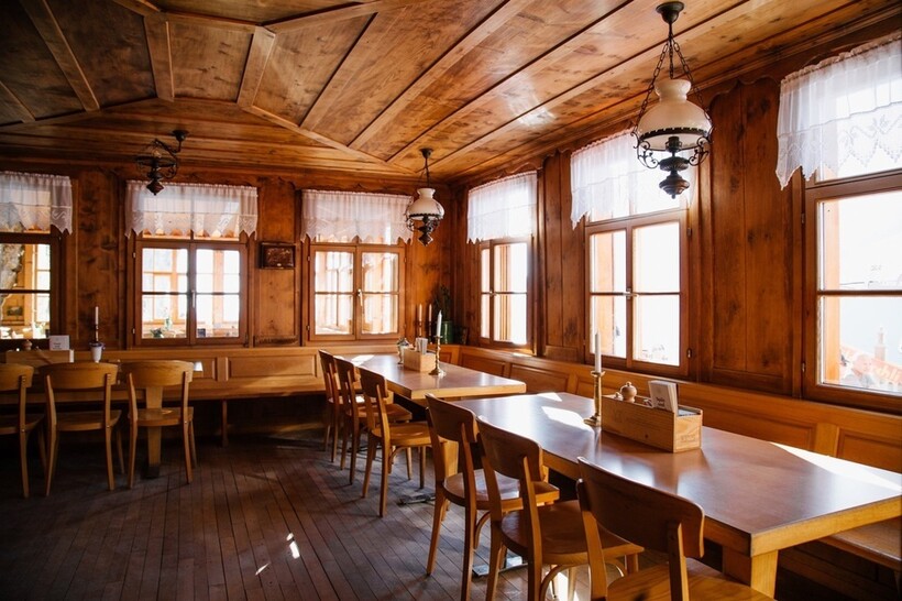 Интерьер и обстановка гостиницы выдержаны в традиционном альпийском стиле