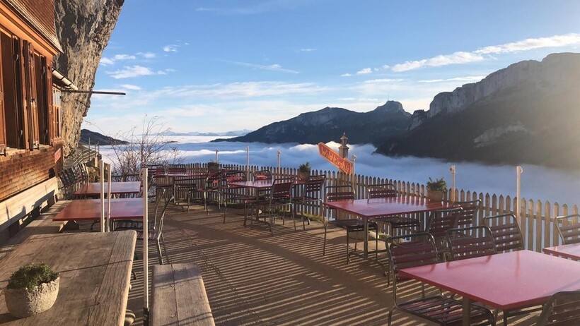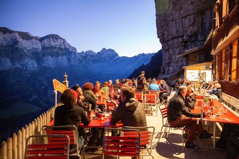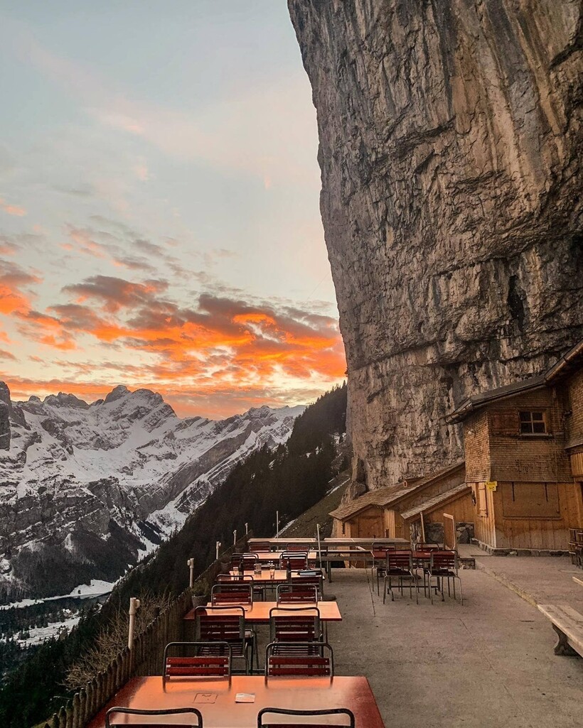 Ну а сам Berggasthaus Äscher обладает уникальной атмосферой, ведь он находится прямо на краю отвесной горы