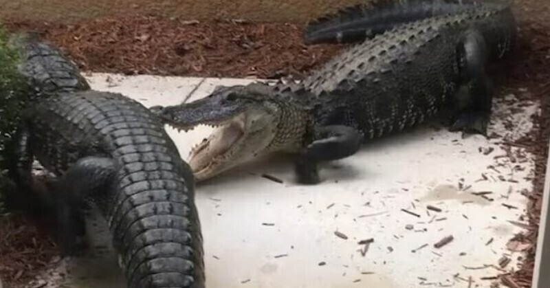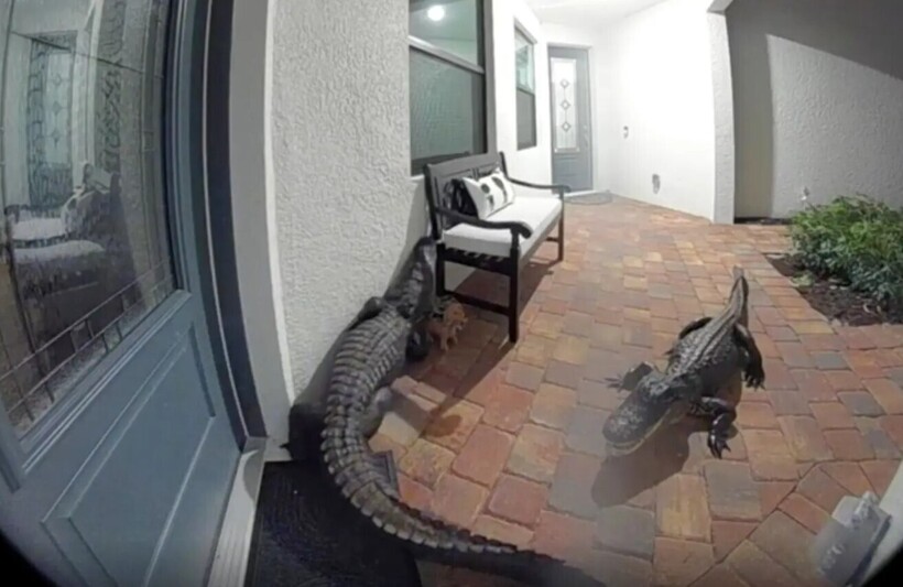 Представьте себе утро, когда вместо почтальона или соседа у вашей входной двери оказываются… два аллигатора! Именно такая необычная встреча произошла с жительницей местечка Аве Мария в американском штате Флорида. В целом американцы в некоторых штатах привыкли к встречам с этими хищниками: например, посмотрите, как однажды аллигатор решил поплавать в бассейне на надувном крокодиле. Однако в дверь они еще никогда не стучались.