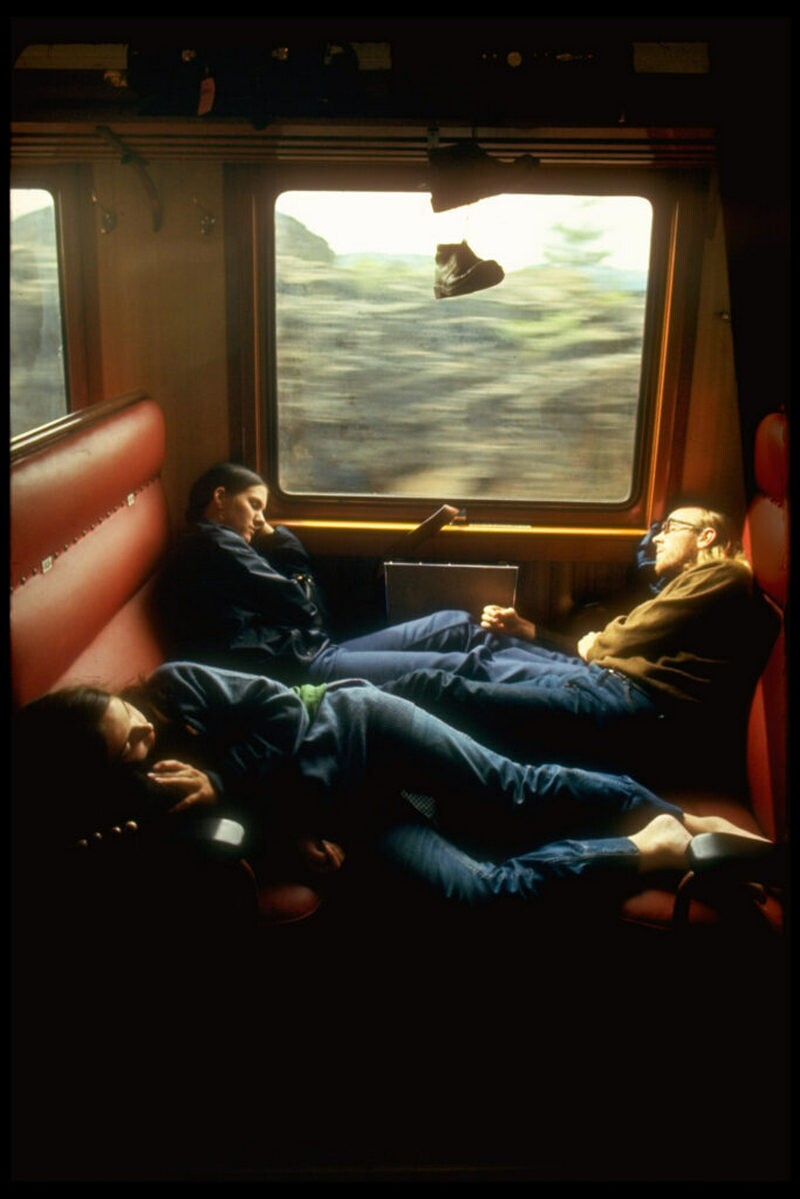 Молодые люди на его фото сидят на вокзалах или спят в вагонах