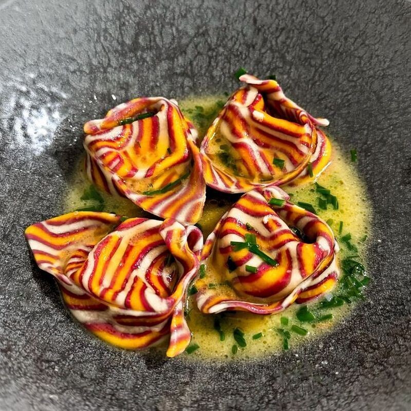 Он экспериментирует с различными формами, от спагетти до тортеллини и каппелетти (итальянских пельменей)