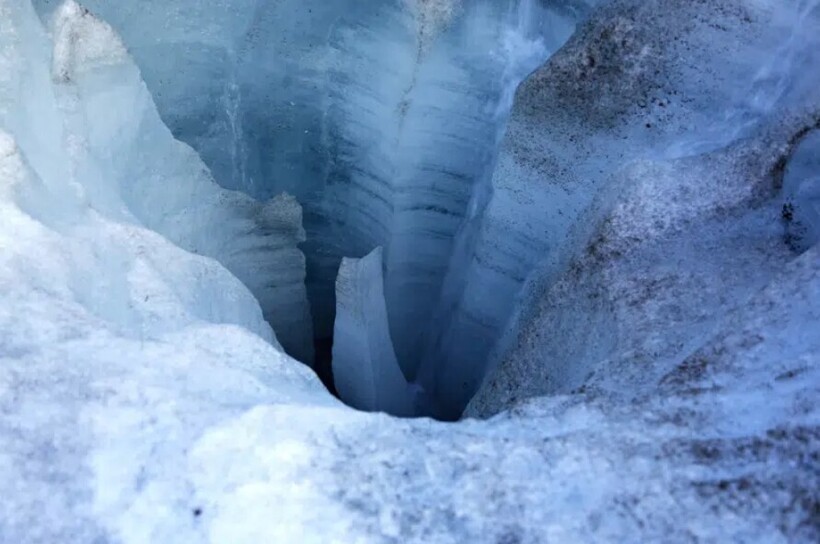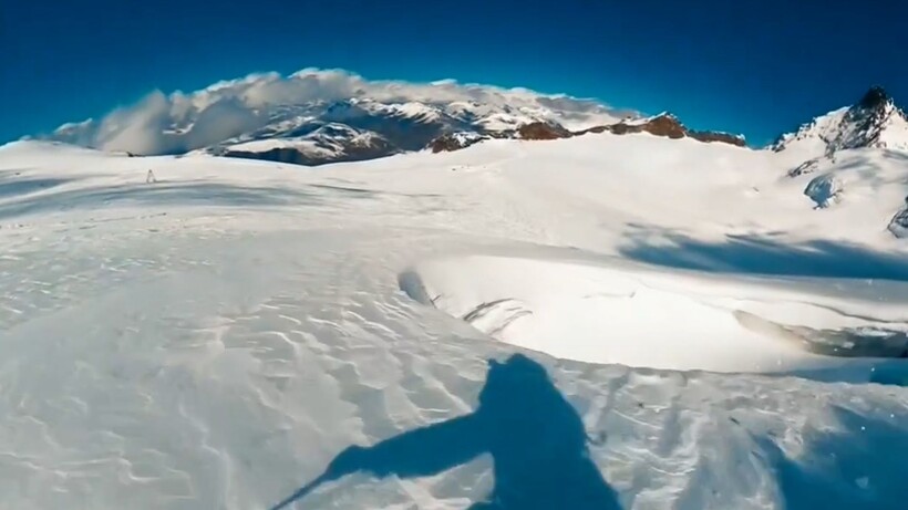 Лыжник катился с горы, когда на его пути возникла огромная трещина на трассе. Он не успел затормозить и практически вертикально упал в нее. Чудом экстремал избежал серьезных последствий.