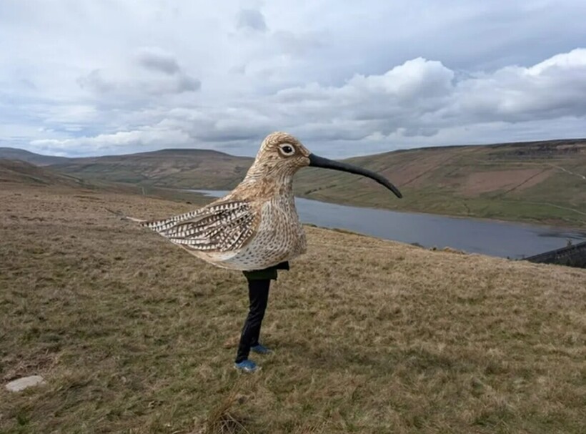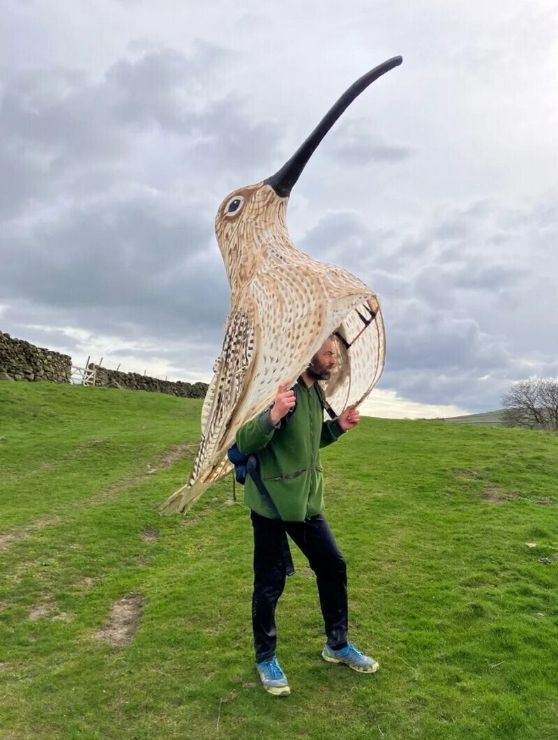 Мэтт Тревельян, 46-летний житель Великобритании, прошел больше 80 километров по Йоркширу в необычном виде: на нем был костюм кроншнепа ― крупной птицы Европы, которая живет на болотах. Англичанин назвал свое творение «Кэтти», и на его создание он потратил три дня.