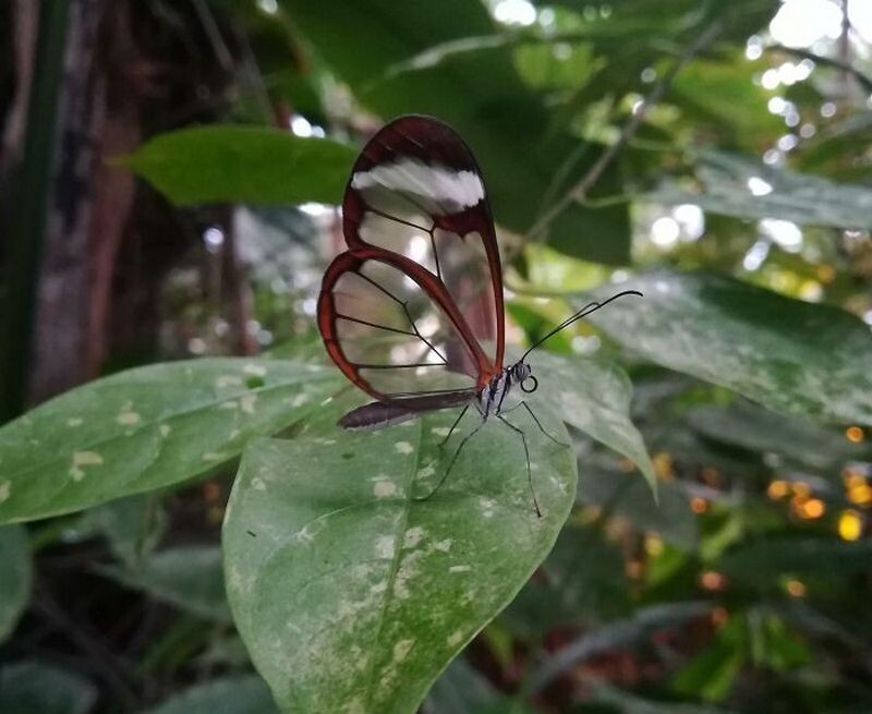 Прозрачная бабочка, которая села на лист