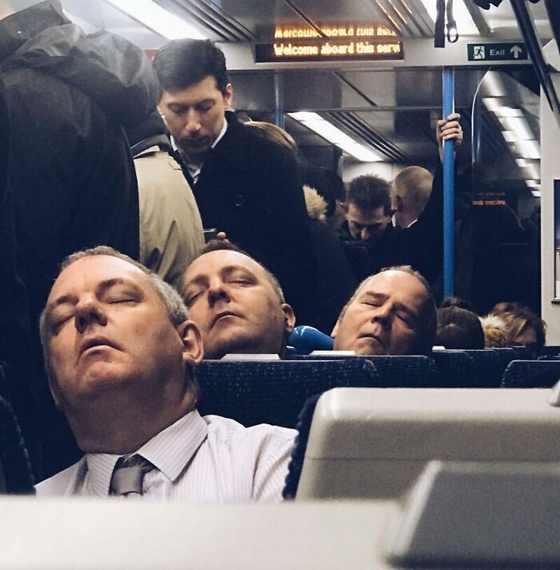 Случайные пассажиры в метро выглядят, как тройняшки