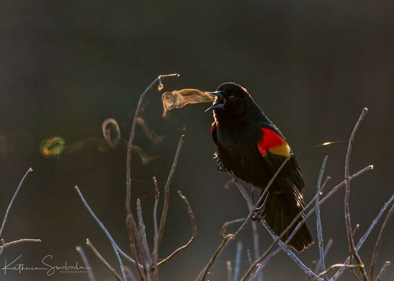 Пар из клюва птички в морозное утро