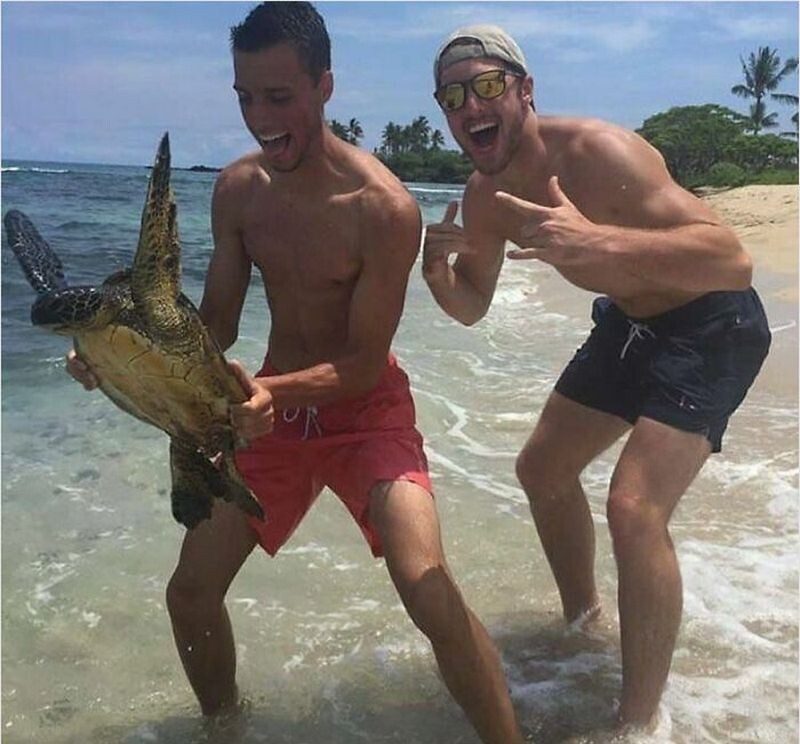 Эти мужчины поймали черепаху, чтобы с ней сфотографироваться
