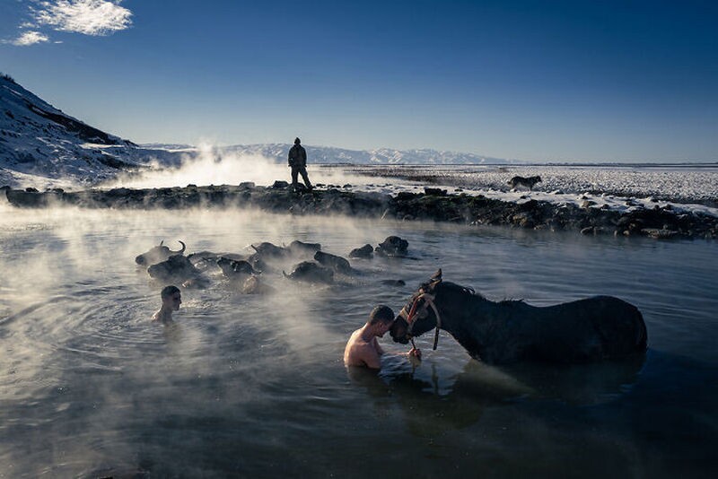 3 место: люди, буйволы и кони греются в горячих источниках в турецком городе Битлис
