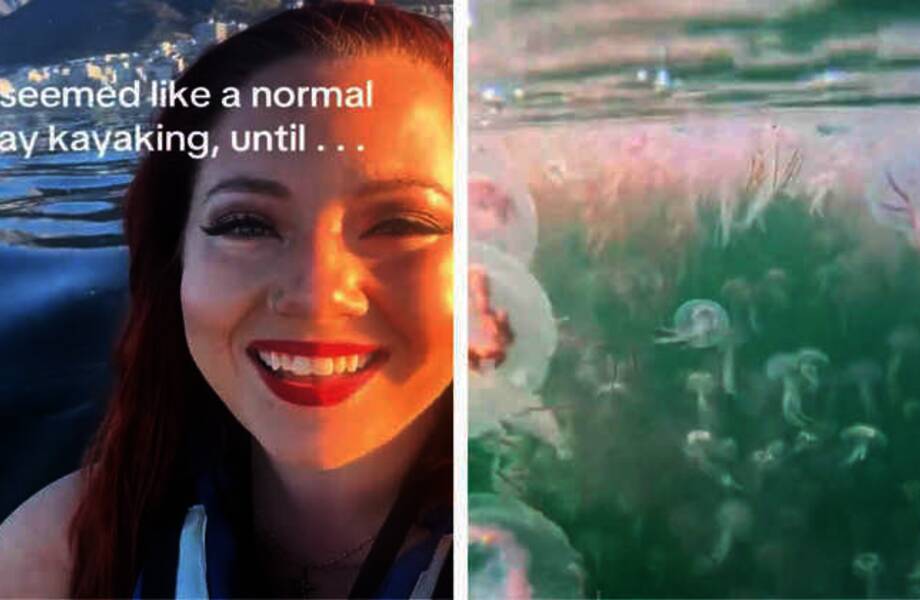 Началось все довольно буднично: пара наслаждалась неспешным движением лодки по спокойному океану, когда вдали показалась первая одиночная медуза. Меган испытала восторг от встречи с этим существом, но вскоре он сменился волнением: вслед за первой медузой последовали другие, сначала две-три, а затем целая стая. Удивленная Меган решила запечатлеть происходящее на камеру GoPro, погрузив ее в воду.