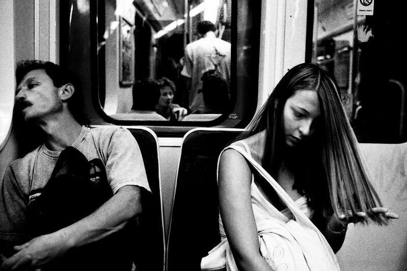 В метро, где люди сидят так близко, но так одиноки