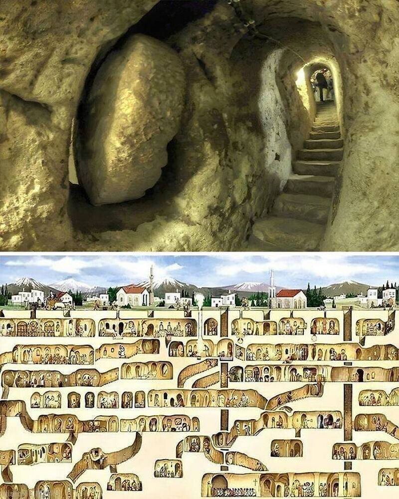 Коридор в подземном городе Деринкую, Турция: в нем когда-то проживало 60 тысяч человек