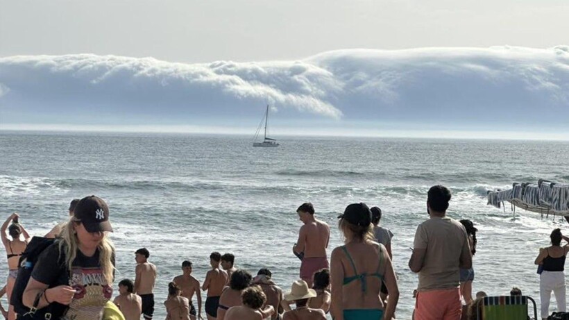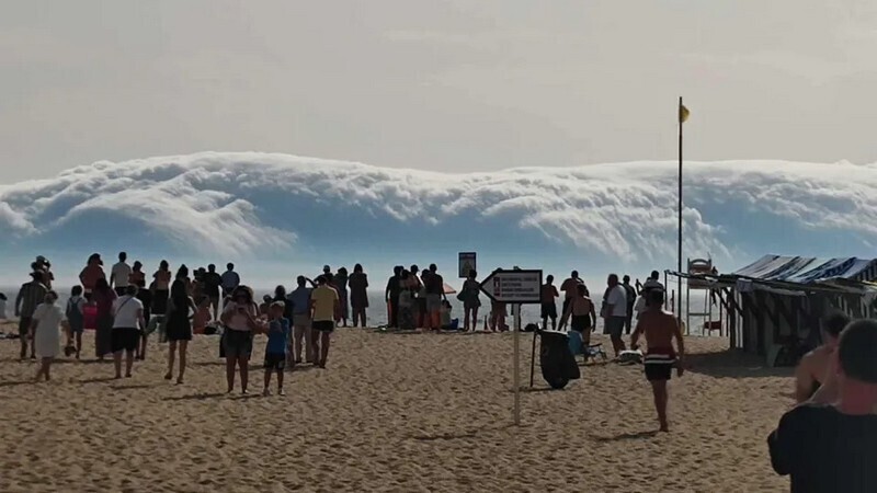Португальских туристов поразило редчайшее атмосферное явление ― огромное «рулонное» облако, накрывшее пляжи словно океанская волна. Это явление абсолютно безопасно, но внешний вид настолько необычный, что многие приняли его за приближающийся шторм.