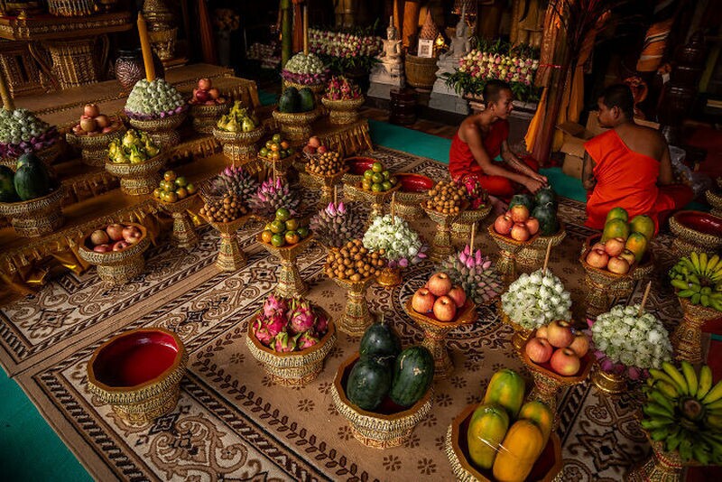 Буддийские подношения в храме Ангкор-Ват Камбоджи