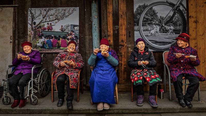 Пожилые китаянки наслаждаются едой в древнем городе Шуанлю: снимок стал абсолютным победителем