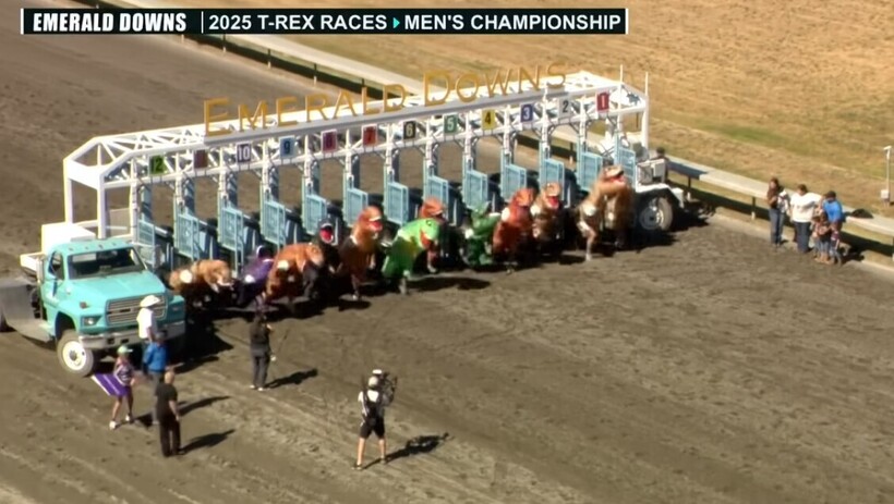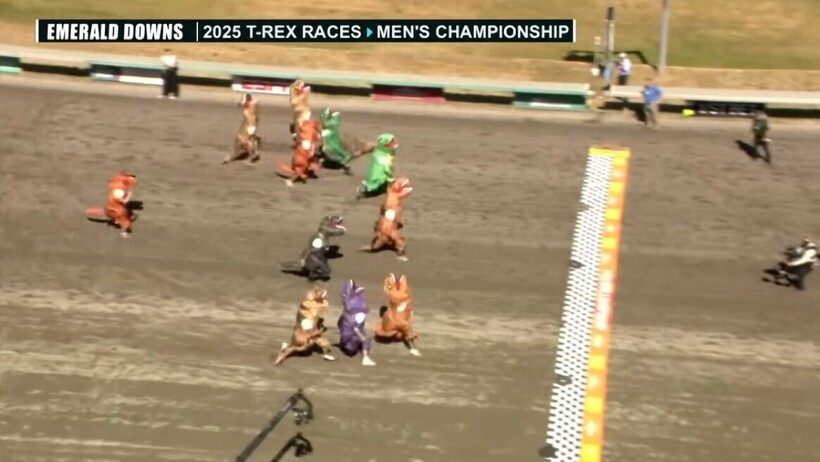 В городе Оберн, штат Вашингтон, прошел ежегодный чемпионат мира по бегу в костюмах тираннозавров. Соревнование собрало больше трехсот участников разного возраста ― мужчины, женщины и дети изъявили принять участие в гонках.