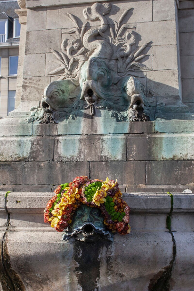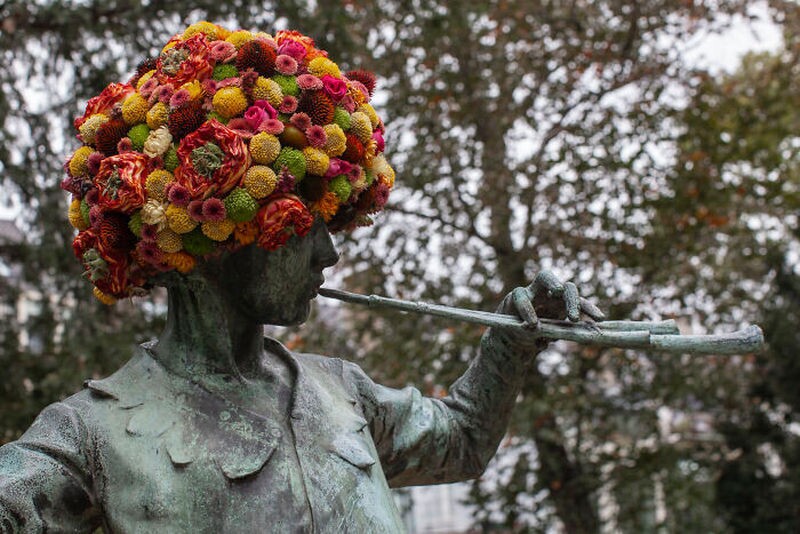Художник-флорист Жоффруа Моттар создает произведения искусства прямо на улицах городов. Этот бельгиец буквально преобразует обычные городские пространства, придавая старым общественным скульптурам совершенно новое звучание. И все это ему удается сделать благодаря живым украшениям из цветов.