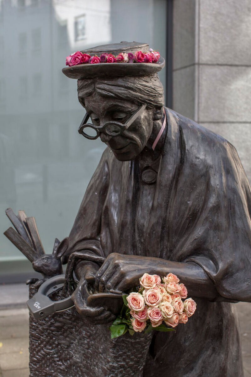 Цветы, размещенные на статуях, не только привлекают взгляды