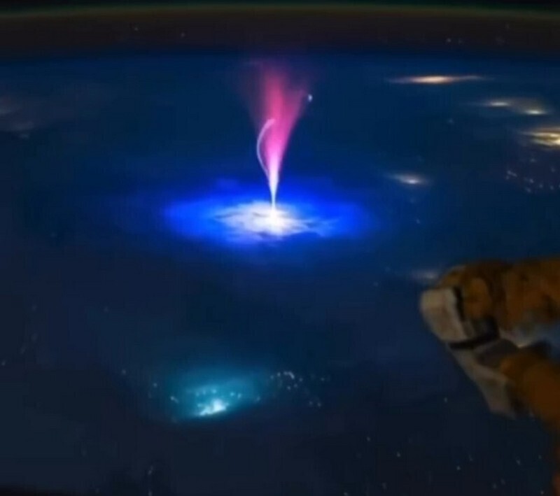 Но никогда еще у зрителя не было возможности наблюдать за спрайтом из космоса, пока Николь Айрес не запечатлела на видео этот феномен. Она заметила его ранним утром 3 июля, когда МКС проходила над американо-мексиканской границей.