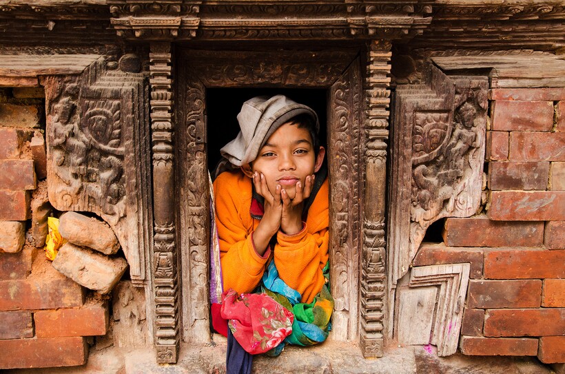 Мальчишка в заброшенном индуистском храме в Катманду, Непал