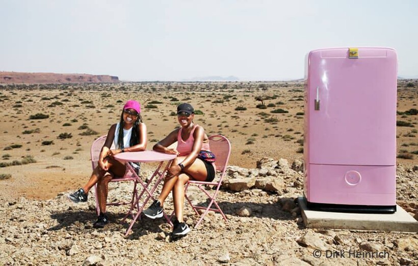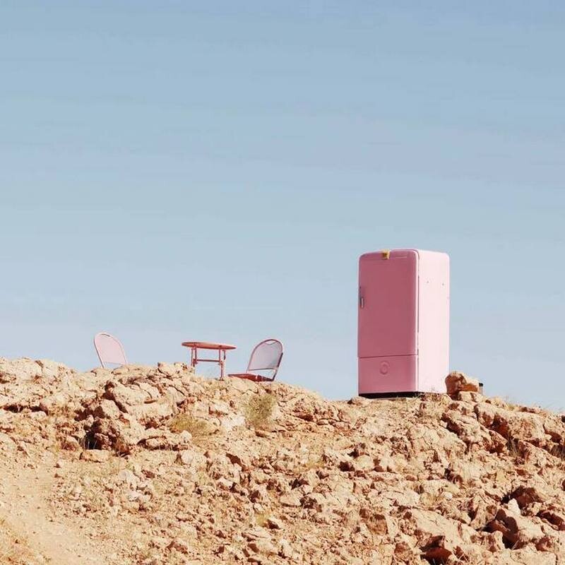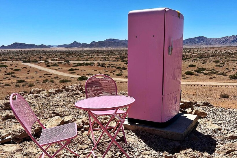 Представьте себе картину: путешественник едет по пустыне, как вдруг неожиданно на его пути посреди песков вырастает розовый холодильник, два ярких стула и столик. И нет, это не мираж, как можно было бы подумать. Бытовая техника абсолютно реальна, более того, она работает: ее питает солнечная энергия. Внутри холодильника ― прохладительные напитки, которые помогают уставшим путникам утолить жажду и дарят неожиданный отдых и глоток свежести.