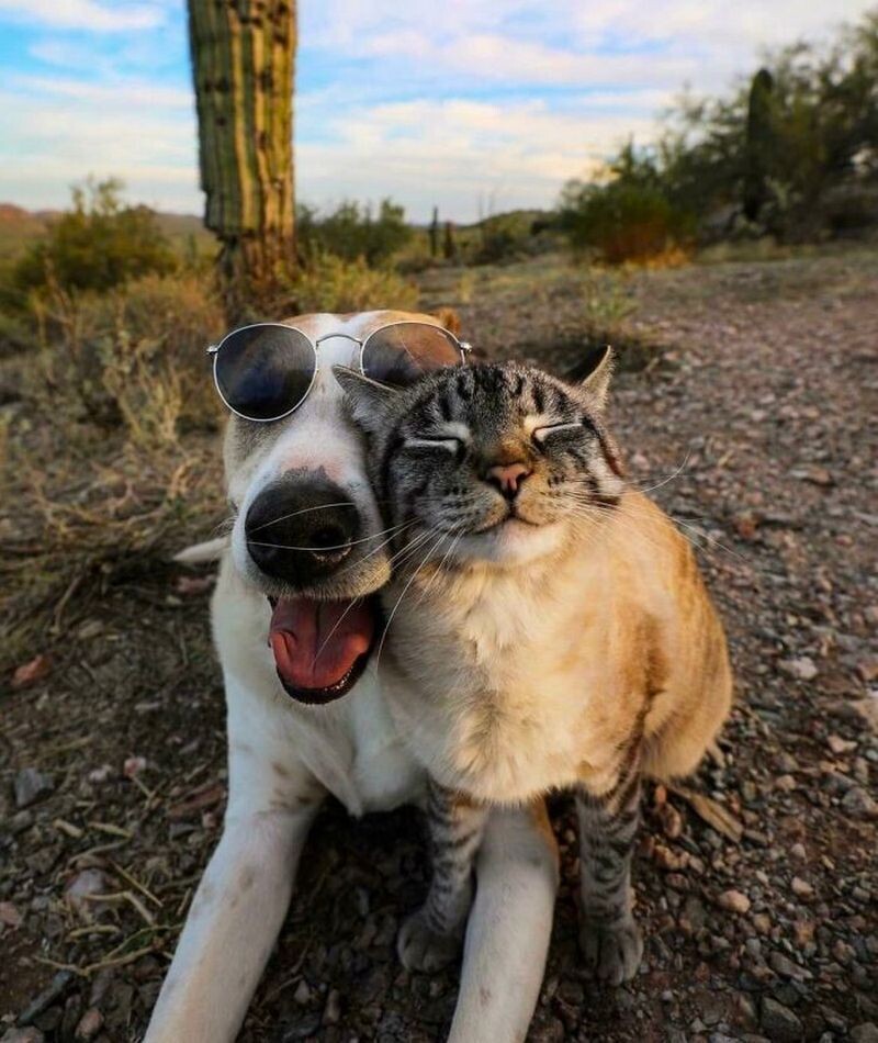 Посмотрите больше примеров, что собаки с кошками могут действительно дружить!