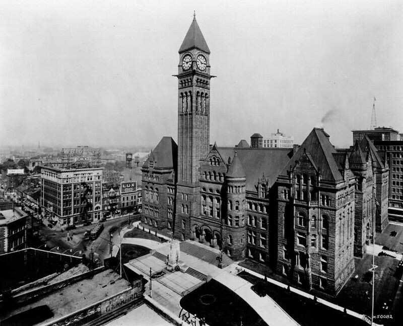 Старая ратуша в Торонто около ста лет назад: сейчас позади небоскребы