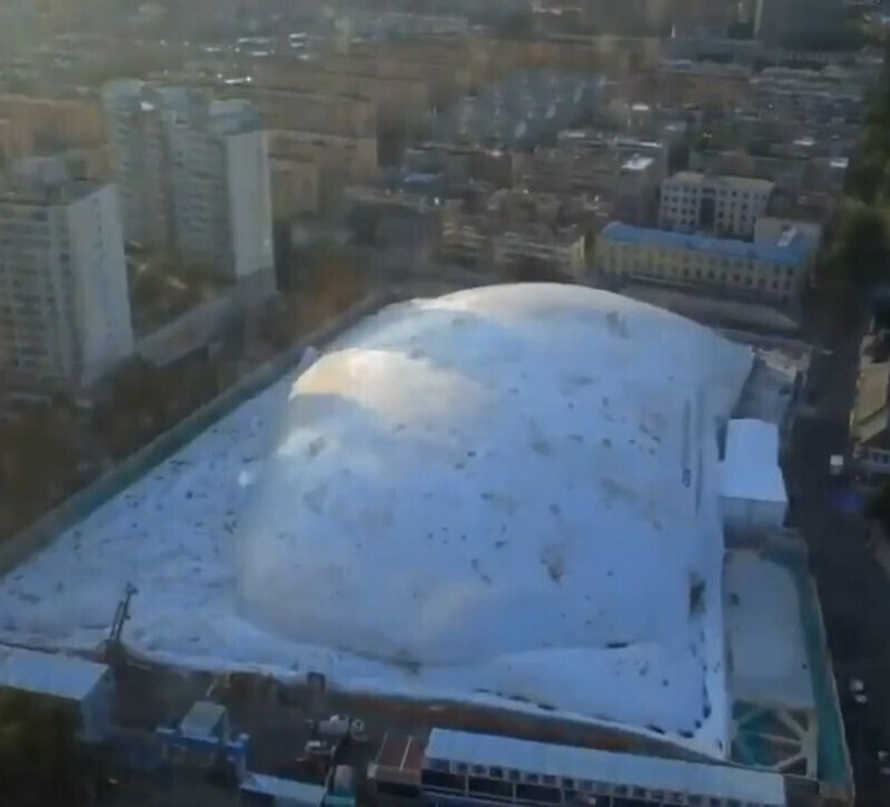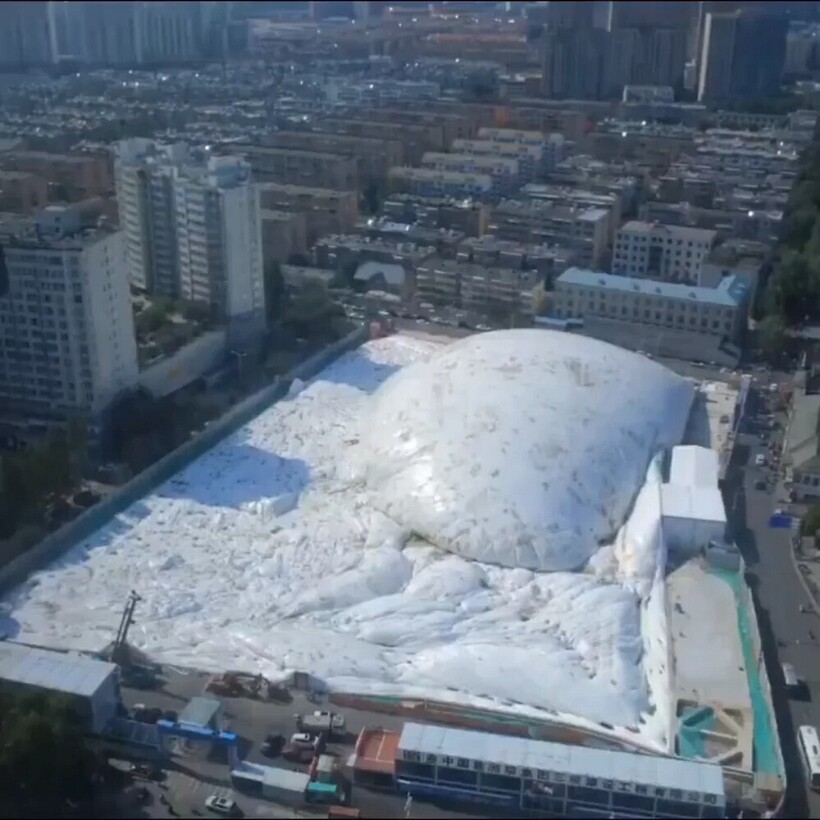 Городское строительство в Китае получило неожиданное технологическое решение: на стройке в городе Цзинань появилась уникальная надувная конструкция.
