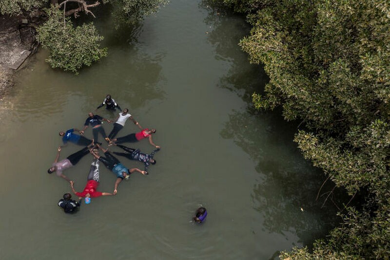 Гамбийские женщины учатся плавать, чтобы работать и собирать устрицы