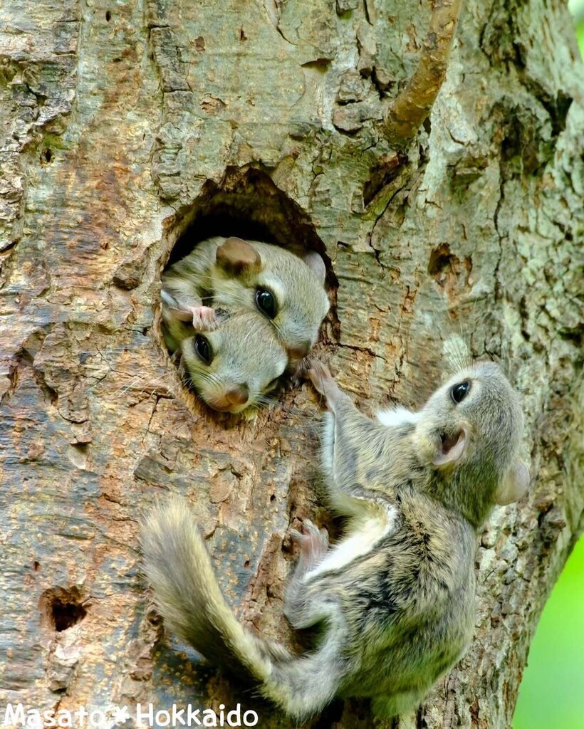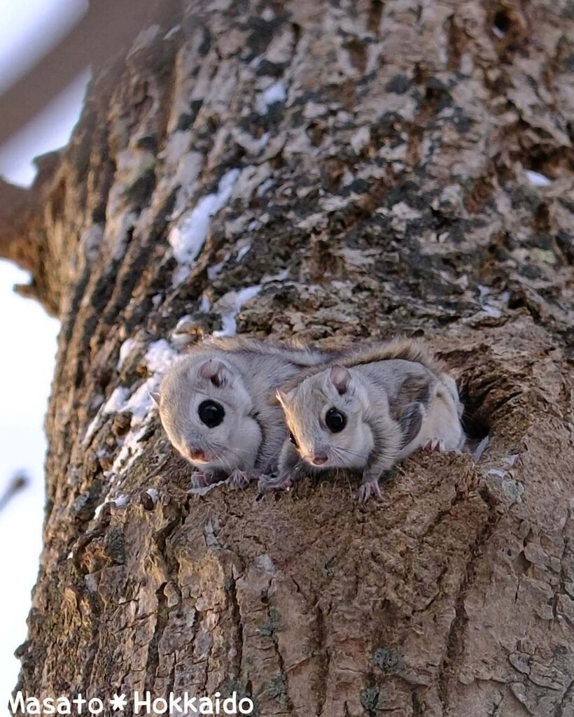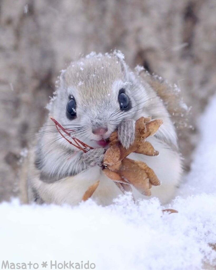 Серая шерстка, огромные мультяшные глаза и крошечные лапки ― так выглядит эдзо-момонга, японская белка-летяга. Живет она на острове Хоккайдо, который очень любит фотограф Масато Сасаки. Японец приезжает сюда регулярно, чтобы пофотографировать дикую природу. Благодаря его снимкам эдзо-момонга стали настоящими звездами сети.