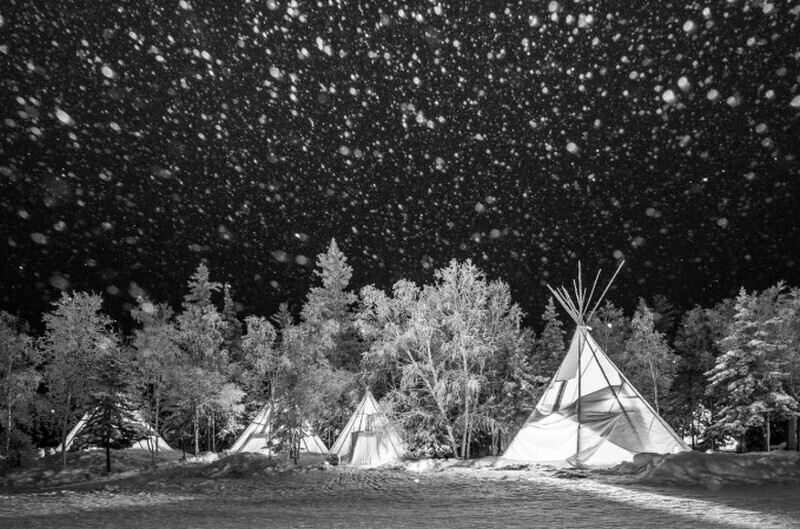 Снегопад недалеко от канадского Йеллоунайфа, в который попал фотограф во время поисков авроры