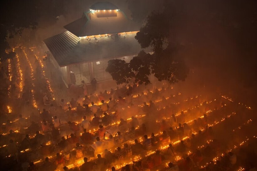 Праздник Rakher Upobas в Бангладеш и сотни ламп, зажженных в честь него