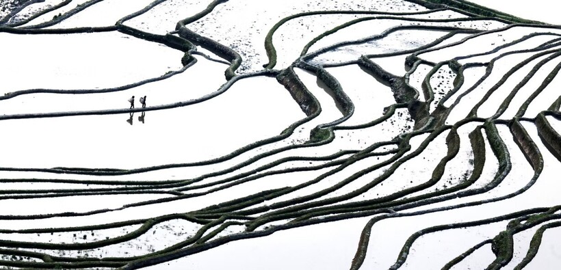 Рисовые террасы в черно-белых тонах